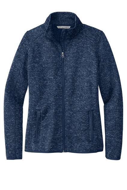 Ladies fit sweater fleece jacket with full zip and left chest Melham logo embroidered in black or silver to match the jacket color. Available in black heather, river blue navy heather, gray heather, or medium blue heather.